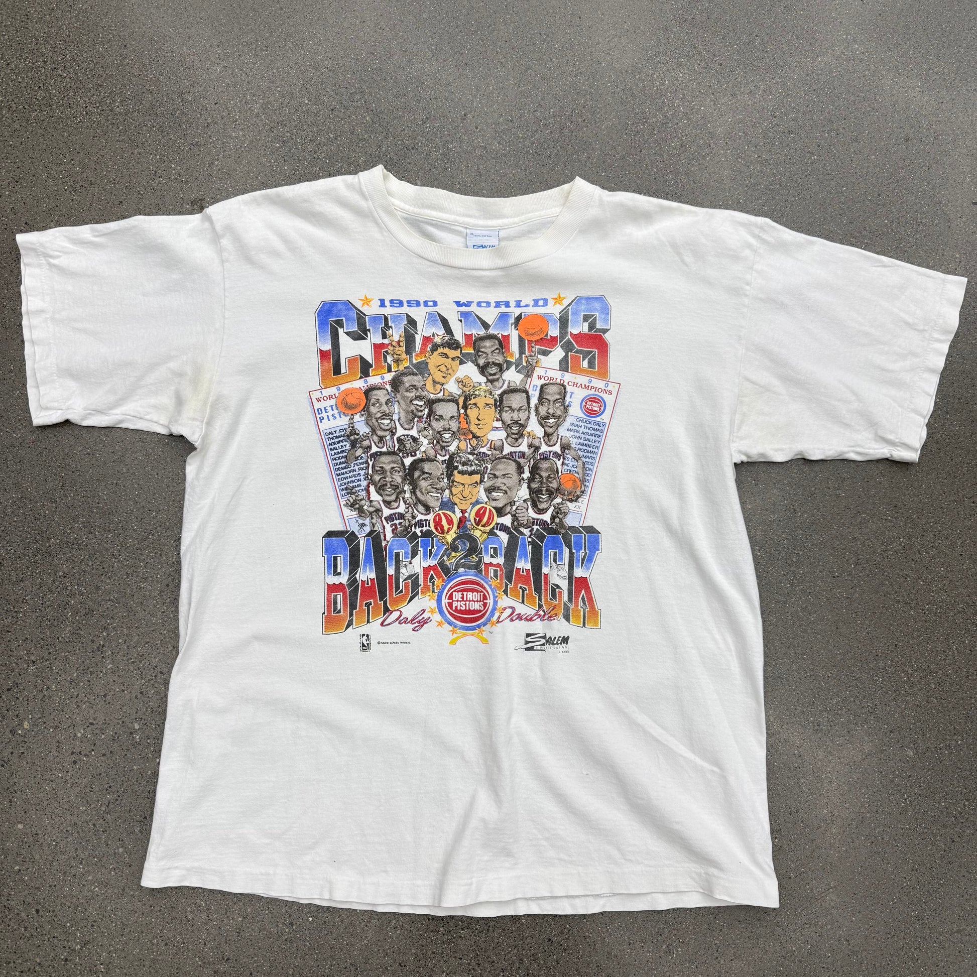 1990 World Champs Detroit Pistons B2B Tee SZ XL