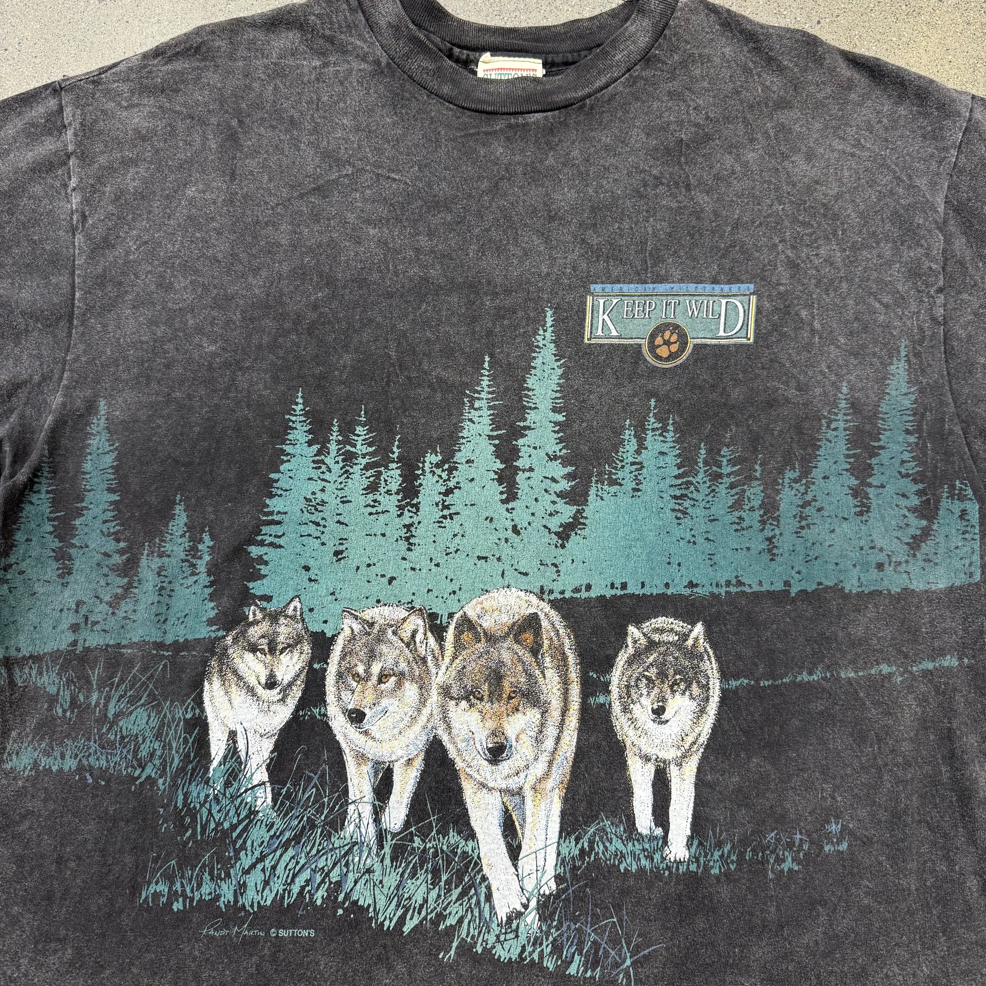 90s Keep it Wild Wolves Tee Black SZ Large