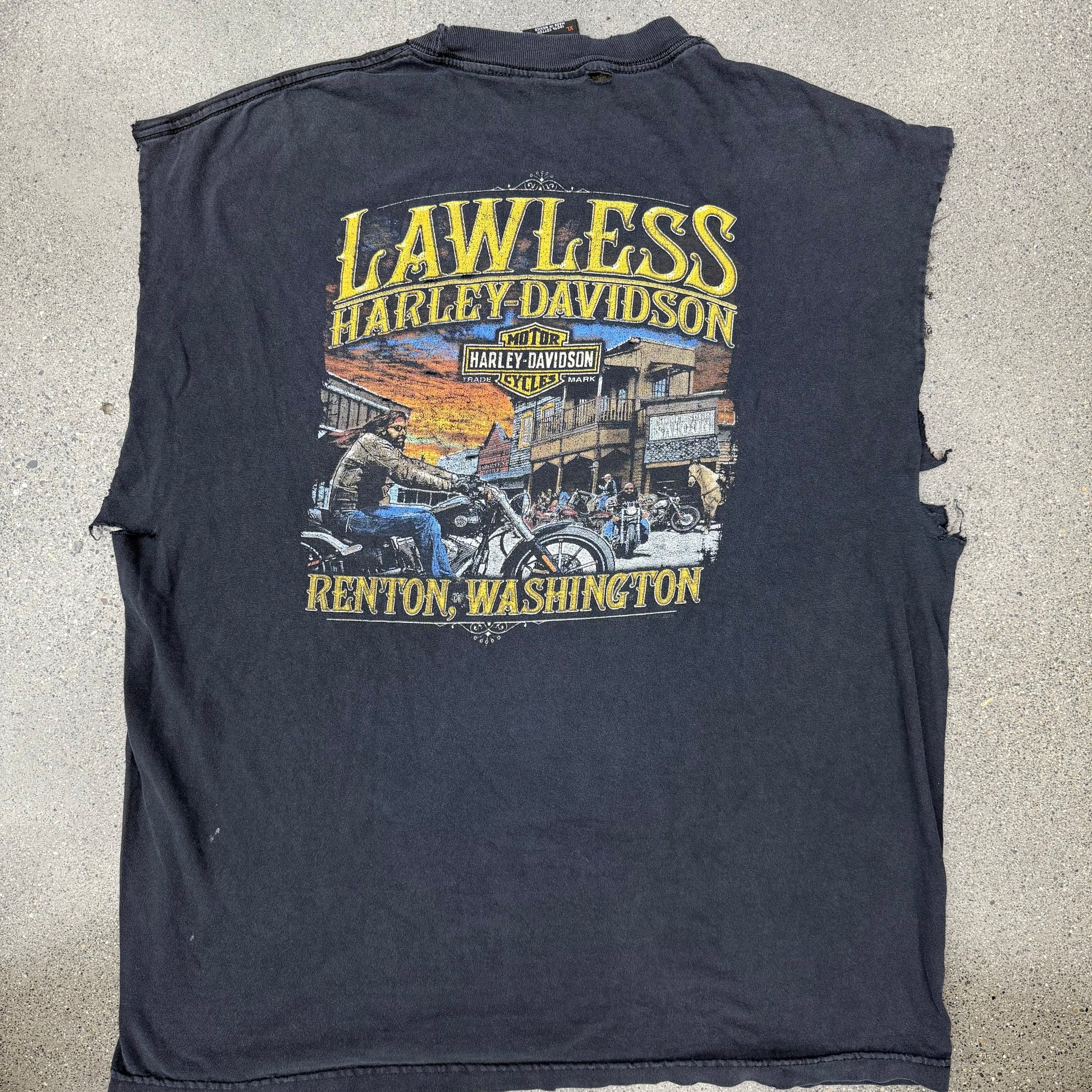 90s Harley Cut Off Lawless Renton Washington Tee SZ XL